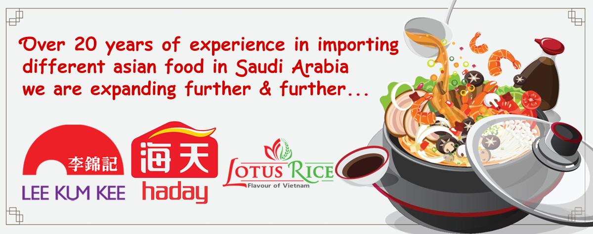 Asia Food Trading is specialized in importing Chinese and Asian food. Our retail stores are located in Riyadh and Khobar, Saudi Arabia. We supply restaurants, catering companies, hotels and supermarkets.